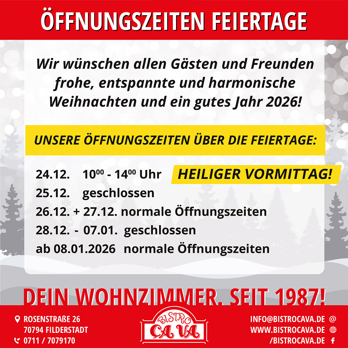 Mi, 24.12. 10⁰⁰ – 14⁰⁰ Uhr geöffnet